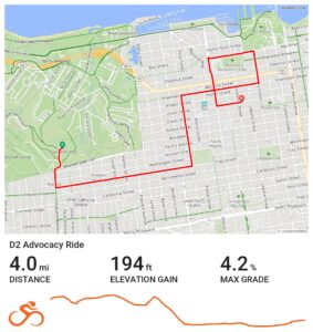 Are you looking for opportunities to get involved with bicycle advocacy? Do you live in or frequent District 2 (Marina, Cow Hollow, Pacific Heights, Presidio, Presidio Heights)? Join us for a bike ride and a brainstorming session on Saturday September 27 to determine bike infrastructure priorities for the district and strategize on how we can achieve them.