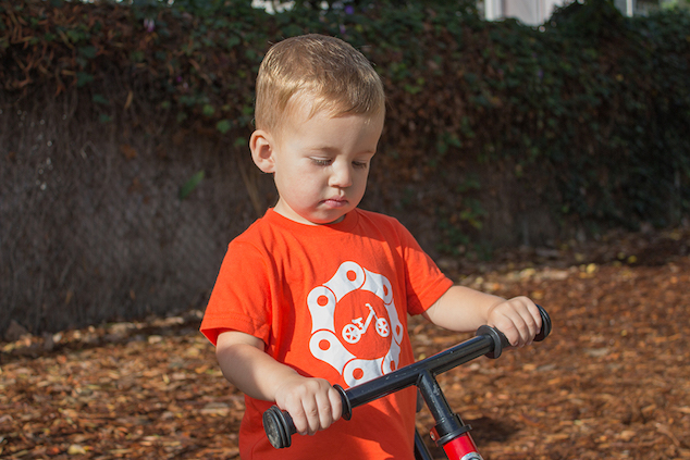 With the hardest part about learning how to bike being balancing — not pedaling — the best-practice in teaching little ones these days is with a pedal-free balance bike. Accurately represent how the little ones in your life get down on two wheels with our brand new balance bike shirt. We printed it in bright orange so that they’re easy to keep track of even as they get comfortable zipping around.
