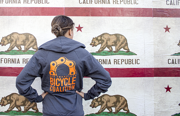 Show your SF Bicycle Coalition love with our newest t-shirt design. Printed locally on a 100-percent cotton t-shirt and available in both standard (left) and form-fit (right), this design features our classic orange logo on a grey Bella+Canvas shirt. Available in small, medium, large or extra large.