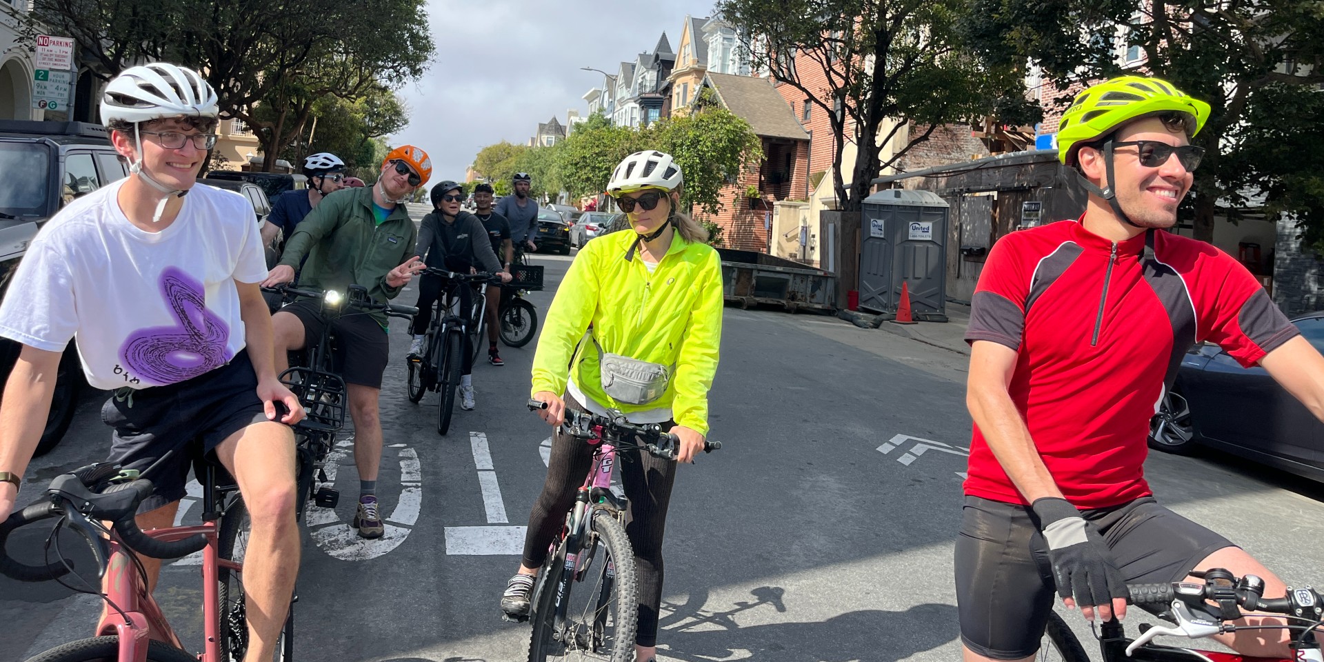 A few weeks ago, we hosted a bike ride and community meeting with our friends at Northern Neighbors to explore District 2 and talk about the biking and rolling priorities for this part of the city. District 2 covers neighborhoods including Pacific Heights, the Presidio, Lower Pacific Heights, Cow Hollow, the Marina, Fort Mason, and Presidio Heights. These are neighborhoods full of tourist attractions and neighborhood favorites, so it’s crucial that people are safely able to bike and roll in these areas.