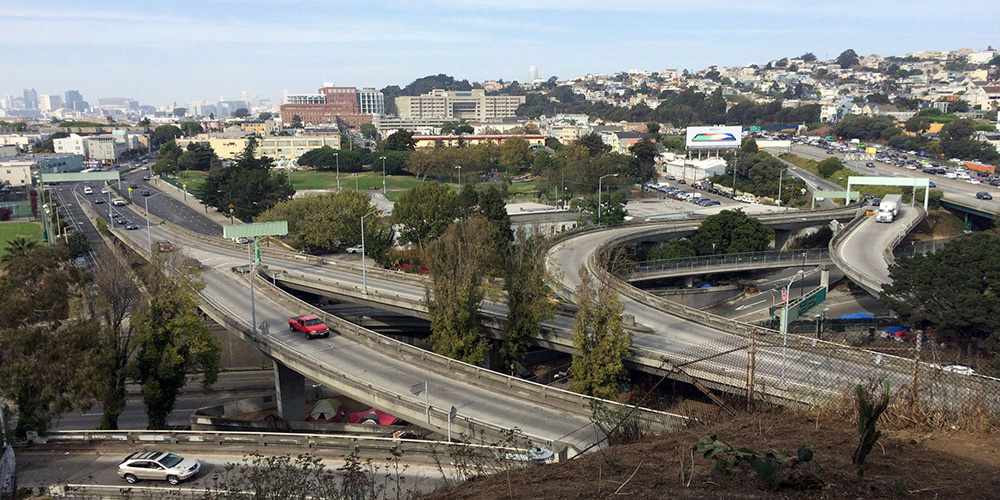 Though SFMTA has made improvements to the Hairball before now, and we’ve seen positive results from those incremental updates, we still have a long way to go for this complex intersection to truly be safe. We support SFMTA’S effort in this current round of improvements while still urging them to go further. For far too long has the Hairball remained on our City’s High-Injury Network, 12% of streets that account for 68% severe and fatal collisions. One of our biggest concerns is the absence of protected bike infrastructure along Bayshore, between Oakdale and Jerrold. The inconsistent infrastructure along this segment of Bayshore creates confusion for people who bike, and pushes them into speeding traffic or on the sidewalk.